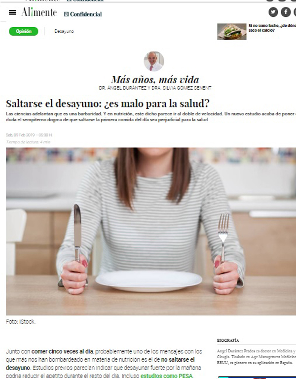 Entrevista de Patricia Matey al Dr Durántez en la revista Alimente. En declaraciones a Alimente, el doctor Ángel Durántez, médico pionero en España de Medicina Preventiva Proactiva y la ‘Age Management Medicine’ (Medicina para el envejecimiento saludable), reconoce: “Existen no pocos estudios en los que la práctica de las distintas variantes del yoga tiene efectos positivos sobre […]