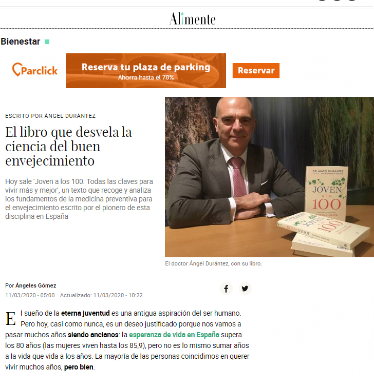 Entrevista realizada al Dr. Durántez y colgada este mes de mayo en www.jesussierra.com. Se abordan varios de los pilares de la medicina preventiva para el envejecimiento saludable; la nutrición, el ejercicio, los suplementos nutricionales…