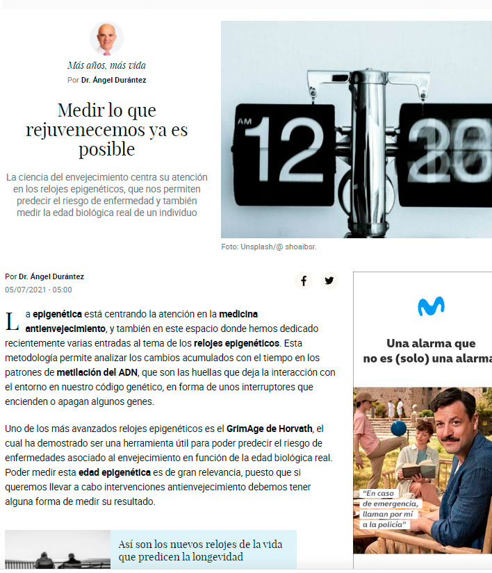 Artículo en inglés publicado en Vogue hace un par de semanas sobre el abordaje del envejecimiento como enfermedad. Nombres y términos tratados en mi libro; ejercicio, dieta mediterránea, Blue Zones, ayuno intermitente, metformina, sueño, secuenciación del genoma, Barzilai, Sinclair…