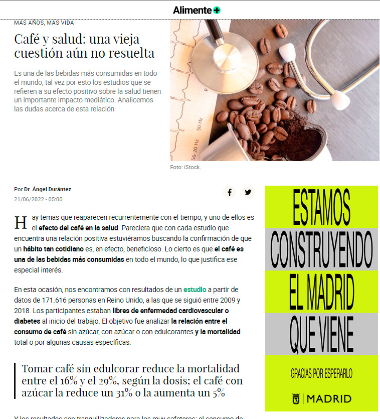 Después del agua, el café es la bebida más consumida en los países occidentales, especialmente en Europa y Estados Unidos. Son varios los estudios epidemiológicos que correlacionan el consumo de café con la mortalidad. En general, en todos ellos se observa una disminución de la mortalidad a medida que se aumenta la cantidad diaria de […]